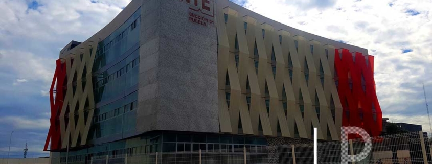 Fachada de acero inoxdable del Teatro Auditorio Ing. Vitálico Silva López